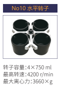 No10 | 水平轉(zhuǎn)子 | 4X 750ml | 4200r/min | 3660xg |