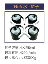 No5 | 水平轉子 | 4x250ml | 4000r/min | 3230xg |